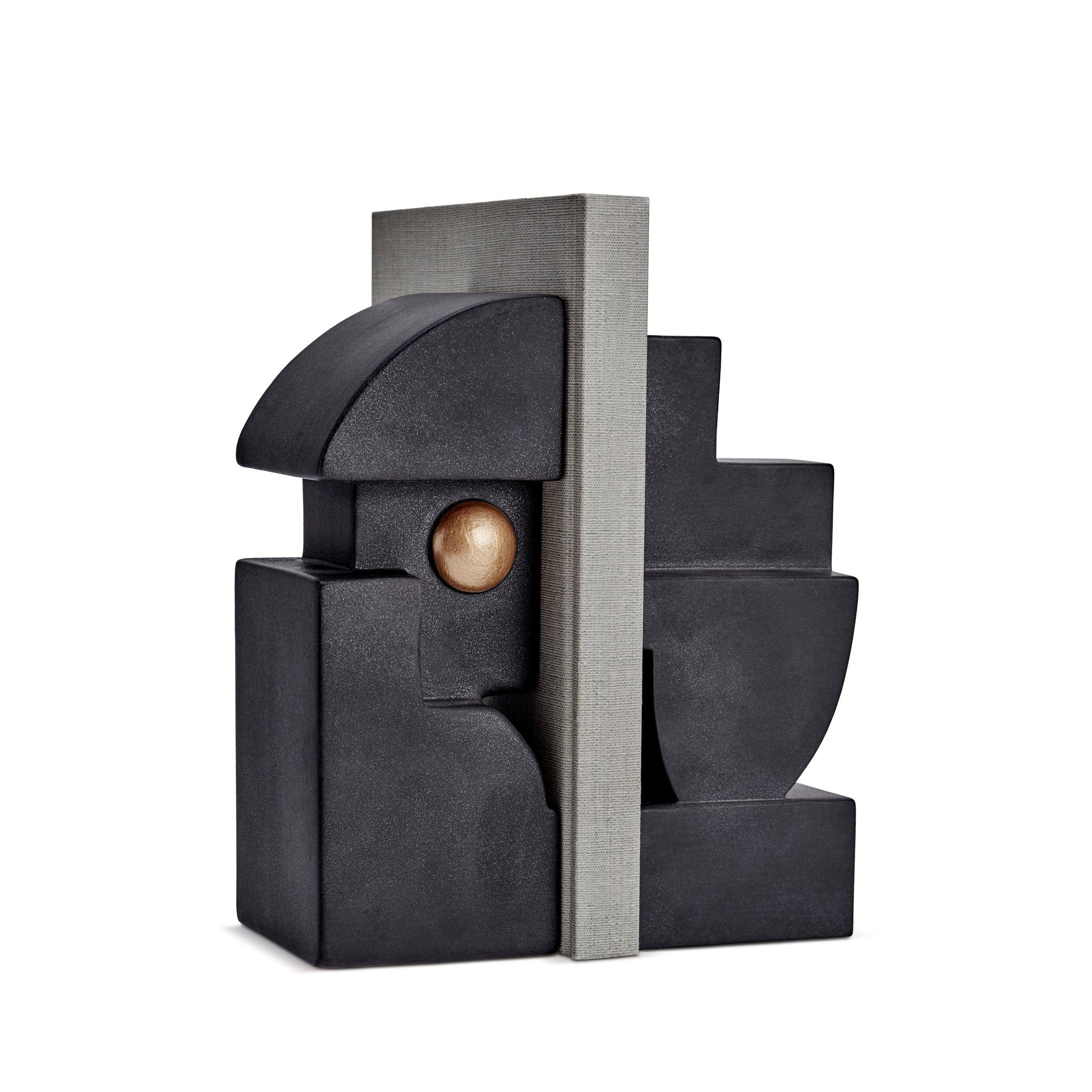 With a nod to both cubist art and Mayan carving, Cubisme takes geometric simplicity to a new level. Bookends are created from lightly textured earthenware and feature antiqued gold accents. Sold separately, Cubisme Bookend 1 and Cubisme Bookend 2 flaunt unique shapes and pair in a way that enhances the unique design of each object.